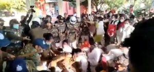 प्रदर्शनकारियों पर लाठी भांजती पुलिस
