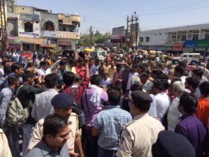मंदसौर। सर्राफा कारोबारी अनिल सोनी की हत्या के मामले में गुरूवार को बड़ा बवाल हो गया। पोस्टमार्टम के बाद शव लेकर परिजन गांधी नगर चौराहे पर जमा हो गए। शव को बकायदा तिरंगे से लिपटा गया। जबकि यह सारी कार्रवाई बिना अनुमति की गई। अब अफसर अपनी जान बचा रहे हैं।