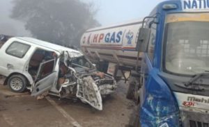 सिरसा। Sirsa Accident हरियाणा के सिरसा (Sirsa) में रविवार सुबह एक बड़ा सड़क हादसा हो गया। सत्संगियों से भरी टवेरा गाड़ी एचपी गैस के ट्राले से टकरा गई। हादसे में 5 लोगों की मौके पर ही मौत हो गई। चार लोग घायल गंभीर घायल हुए है, उन्हें अस्पताल पहुंचाया गया है। हादसा सिरसा के पनिहारी गांव के पास हुआ। टक्कर इतनी जोरदार थी कि टवेरा के परखच्चे उड़ गए। सामने से गाड़ी पूरी तरह खत्म हो गई। टवेरा में नौ सत्संगी सवार थे। डेरा सच्चा सौदा के सत्संगी सत्संग के लिए जा रहे थे। इसी दौरान वो हादसे के शिकार हो गई। जानकारी के मुताबिक टवेरा में सवार सभी लोग पंजाब के रहने वाले है।