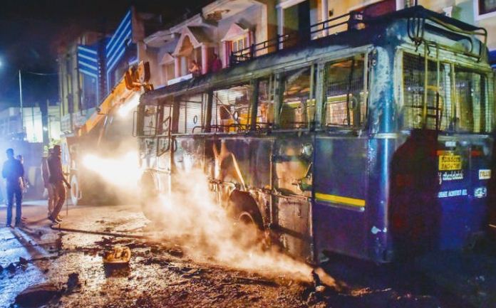 बेंगलुरु। (Bengaluru) देश की आईटी राजधानी कहे जाने वाले शहर बेंगलुरु (Bengaluru Violence) में मंगलवार रात एक आपत्तिजनक फेसबुक पोस्ट (Facebook Post) को लेकर हिंसा हो गई। हिंसा इतनी बढ़ी की उपद्रवियों ने एक पुलिस थाने को फूंक दिया। हालात को काबू करने के लिए पुलिस को भी फायरिंग करनी पड़ी। जिसमें 3 उपद्रवियों की मौत हो गई। इस बवाल में 60 पुलिसकर्मी के घायल होने की खबर हैं।हिंसा शहर के डीजे हल्ली और केजी हल्ली पुलिस थाना के अंतर्गत हुई। हिंसा मे पुलिस स्टेशन के साथ कई गाड़ियों को भी आग के हवाले कर दिया गया। फिलहाल इस क्षेत्र में कर्फ्यू लगा दिया गया है। पूरे बेंगलूरू में धारा 144 लगा दी गई है।