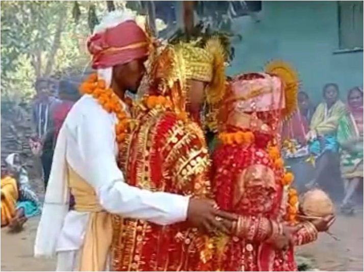 रायपुर। आपने ‘एक हसीना दो दिवाने’ के किस्से तो बहुत सुने होंगे। लेकिन क्या कभी सुना है कि एक युवक के लिए दो हसीनाएं दिवानी हो ! जी हां ऐसा ही अजब-गजब मामला छत्तीसगढ़ के जगदलपुर (Jagdalpur) जिले से सामने आया है। नक्सल प्रभावित बस्तर (Bastar) से अनोखे लव ट्राएंगल का मामला सामने आया है। यहां रहने वाले चंदू मौर्य (Chandu Mourya) नाम के युवक का दो युवतियों के साथ प्रेम-प्रसंग चल रहा था। वो दोनों प्रेमिकाओं के साथ लिव इन रिलेशन में भी रहा। जिसके बाद एक ही मंडप के नीच दोनों से शादी भी कर ली।