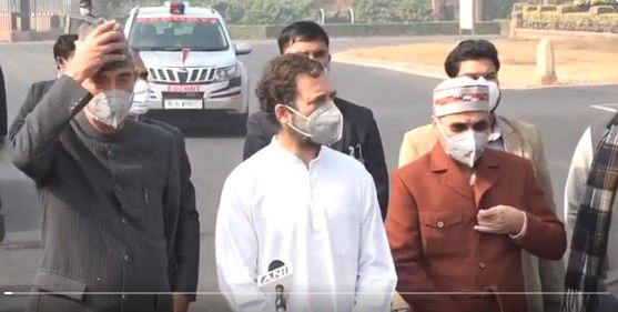 राष्ट्रपति भवन से वापस लौट रहे राहुल गांधी ने प्रेस को भी संबोधित किया। उन्होंने कहा कि मोदी सरकार के कृषि कानूनों की वजह से किसान और मजदूर बरबाद हो जाएंगे। किसी भी युवा को रोजगार नहीं मिलेगा। उन्होंने आरोप लगाते हुए कहा कि पीएम मोदी सिर्फ दो-चार उद्योगपतियों के लिए पैसा बनाने का काम कर रहे है। जो भी नरेंद्र मोदी की खिलाफत करता है, उसे आतंकवादी करार दे दिया जाता है। कल को यदि आरएसएस चीफ मोहन भागवत भी मोदी के खिलाफ खड़े हो जाएंगे तो उन्हें भी आतंकवादी कह दिया जाएगा।