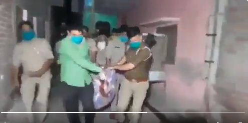 नाबालिग की लाश को ले जाते पुलिसकर्मी