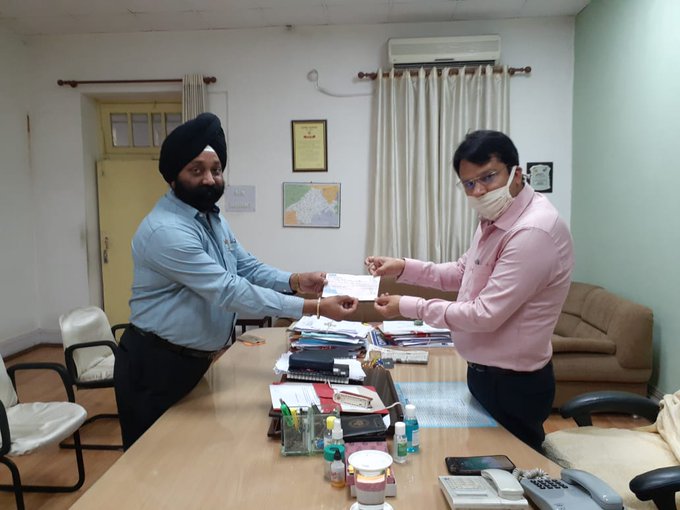 यह तस्वीर जबलपुर कलेक्टर के आधिकारिक ट्वीटर अकाउंट से ली गई है। इसमें सिटी अस्पताल के मालिक सरबजीत सिंह मोखा दिख रहे हैं। उन्होंने मार्च, 2020 में रेडक्रास सोसायटी को पांच लाख रुपए दान दिए थे। यह दान का चैक लेते हुए कलेक्टर भरत यादव दिखाई दे रहे रहे हैंं।