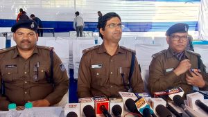 अखिल भारतीय पुलिस वॉटर स्पोर्टस प्रतियोगिता के संबंध में शनिवार दोपहर जानकारी देते हुए (चित्र के मध्य में) सातवीं बटालियन के कमांडेंट हितेश चौधरी।