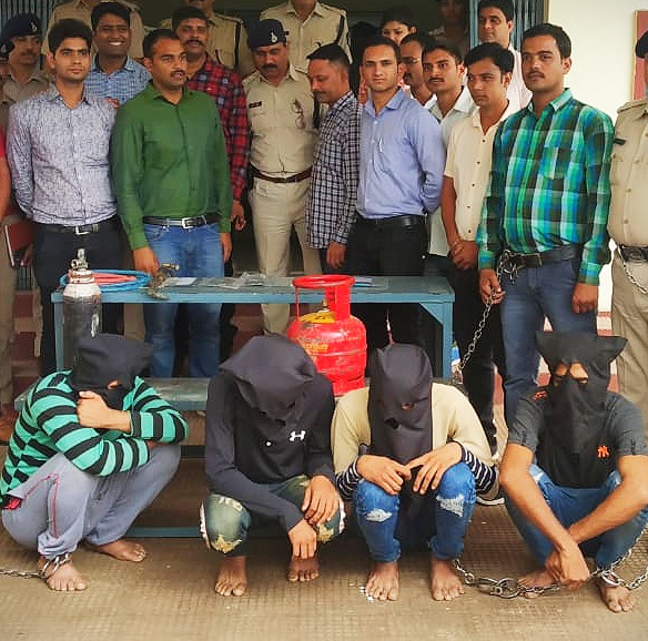 आरोपियों की गिरफ्तारी महाराष्ट्र, राजस्थान से की गई है। गिरफ्तार आरोपियों में रवि बेलवंशी के अलावा हरियाणा के नूह जिला निवासी वसीम खान, पलवल निवासी साकिब मेवाती और भरतपुर के ताहिर खान है। आरोपियों की उम्र 20 से 24 साल के बीच है। आरोपियों के कब्जे से हरियाणा नंबर की दो कार, एक रवि बेलवंशी की कार, गैस सिलेंडर, कटर मशीन, छह मोबाइल जब्त किए गए। हरियाणा नंबर की एक कार को सूरत पुलिस ने बरामद किया है।
