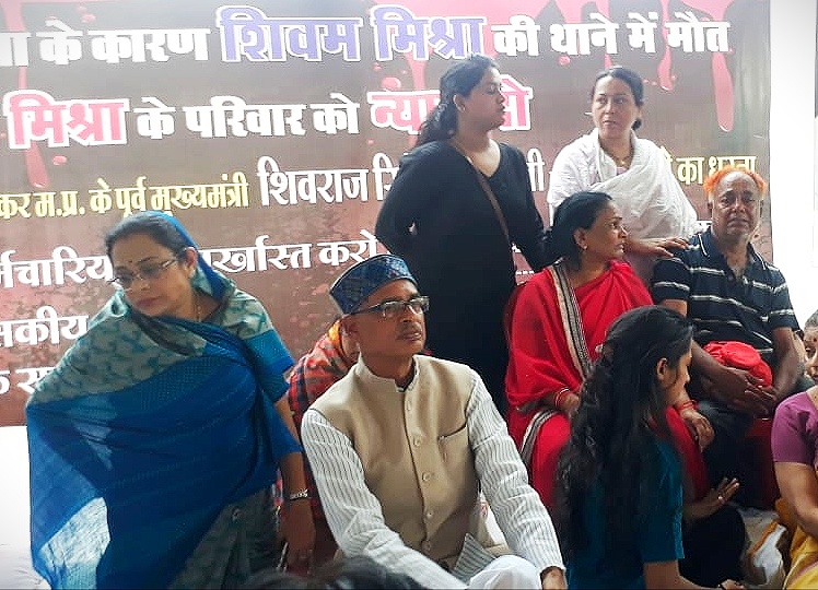 पूर्व मुख्यमंत्री शिवराज सिंह चौहान शिवम मिश्रा के पिता सुरेश मिश्रा, मां संगीता मिश्रा समेत अन्य परिजनों के साथ धरने पर बैठे थे। यह धरना (Bhopal Crime) राजधानी के डिपो चौराहे के नजदीक भारत माता चौराहे पर आयोजित था। धरने में पूर्व गृहमंत्री उमाशंकर गुप्ता, पूर्व विधायक सुरेन्द्र नाथ सिंह, विधायक रामेश्वर शर्मा समेत अन्य भाजपा नेता शामिल थे। पूर्व मुख्यमंत्री ने कहा कि जब राजधानी (Bhopal Crime) में यह हालात है तो क्या बोल सकते हैं। यहां मुख्यमंत्री, मंत्री, डीजीपी और सीएस से लेकर तमाम आला अधिकारी बैठते हैं। बदमाशों को खुली छूट दी जा रही है और शिवम जैसे बेटे जो बूढ़े और विकलांग माता-पिता की लाठी थे उससे बर्बरता करते हुए छीना जा रहा है। अपराधी बेटियों की आबरू लूट रहे हैं बेटे सुरक्षित नहीं हैं। पूर्व मुख्यमंत्री ने दरिंदे और नरपिशाच बोलते वह पुलिसकर्मी (Bhopal Crime) जो इस मामले में संदेही है कहा कि उनके खिलाफ हत्या का मामला दर्ज होना चाहिए। मामले की जांच सीबीआई को सौंपी जानी चाहिए। पुलिसकर्मी जिन्होंने पर्स, चैन निकाल लिया उनके खिलाफ कार्रवाई होना चाहिए। उन्होंने कमलनाथ सरकार को घेरते हुए कहा कि बिना पैसों की पोस्टिंग नहीं होती। जब ऐसा चलेगा तो रिकवरी डंडे के दम पर होगी। उन्होंने मंच से मुख्यमंत्री कमलनाथ और गृहमंत्री बाला बच्चन को आड़े हाथों लेते हुए कहा कि मौत पर लीपापोती नहीं चलेगी। इस मामले को भाजपा जनसंघर्ष बनाकर सरकार से लडऩे के लिए तैयार हैं।
