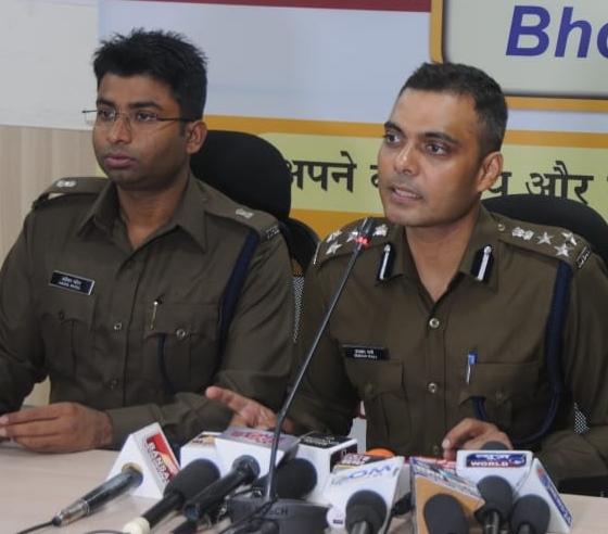 पत्रकार वार्ता में भोपाल आई एप्लिकेशन की जानकारी देते हुए डीआईजी सिटी इरशाद वली, साथ में एएसपी अखिल पटेल