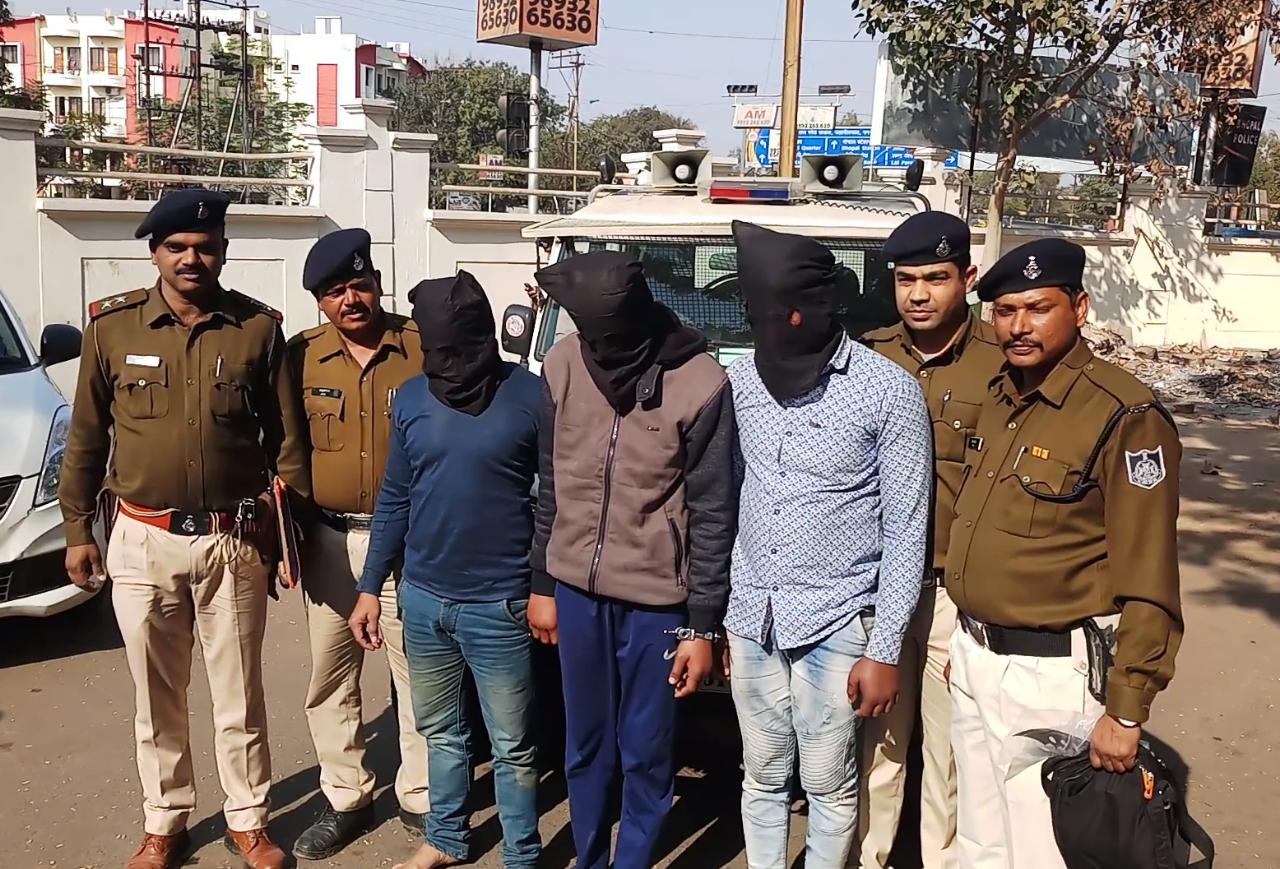 एसपी साउथ राहुल लोढा के मुताबिक टीटी नगर स्टेडियम के पास बीती 2 जनवरी को बाइक सवार तीन नकाबपोश बदमाशों ने पान मसाला व्यापारी 166 एम सी सेक्टर कोलार निवासी वीरभानू कुमार सिंह पुत्र हरिहर सिंह(36) की बाइक पर लात मार चार लाख 10 हजार रुपए की रकम लूट ली थी। उनकी ओम कांपलेक्स बीमा कुंज के पास पूजा न्यू ट्रेडर्स नाम से पान मसाला की शॉप है। वारदात के वक्त व्यापारी पुराने शहर के थोक पान मसाला व्यापारियों को पेमेंट देने जा रहे थे। इस मामले में पुलिस ने तीन आरोपियों को गिरफ्तार किया गया है। तीनों की पहचान सिमरन अपार्टमेंट पंजाबी बाग अशोका गार्डन निवासी निक्की उर्फ रवि पुत्र प्यारेलाल(26), शिव नगर कालोनी छोला निवासी टिंकू उर्फ श्याम पुत्र स्व. रामगोपाल नामदेव(28), नगर निगम कालोनी छोला निवासी नरेंद्र धाकड़ उर्फ करण पुत्र कल्याण(24) के रूप में की गई है।