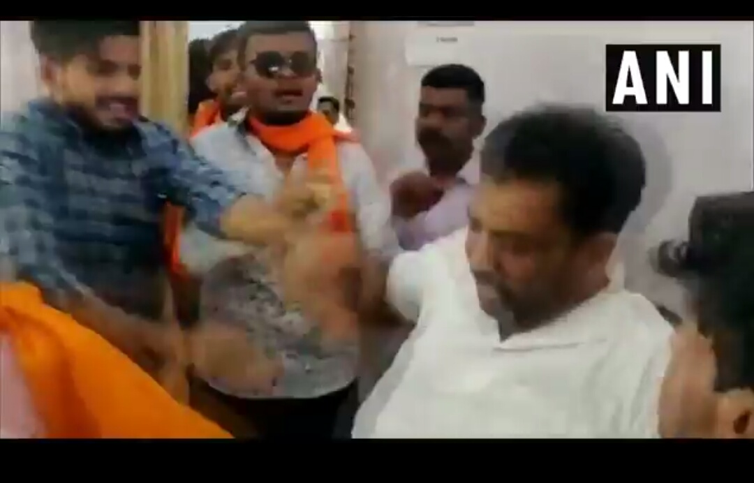 Madhya Pradesh: BJP workers thrashed an NCP worker at SDM office in Bhopal after he allegedly showed black flags to Pragya Singh Thakur, BJP LS candidate from Bhopal, during her roadshow. pic.twitter.com/WsbgIiThWD