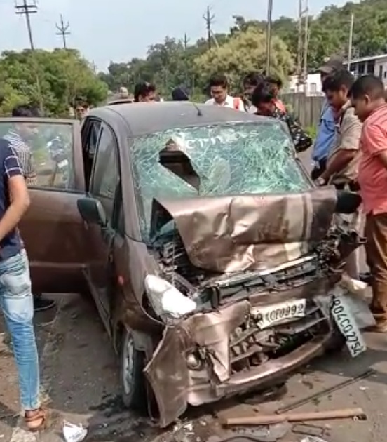 दो कारें आमने—सामने टकराई, टकराने के बाद तालाब में फिकाई एक कार, राहगीरों की मदद से घायलों को कार से निकालकर बंसल अस्पताल में भर्ती कराया गया