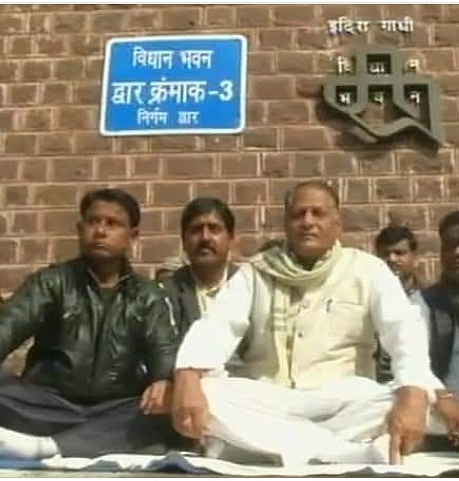 विधानसभा के गेट पर दिया धरना, जनसंपर्क मंत्री पीसी शर्मा से मुलाकात के बाद संतुष्ट होने का किया दावा