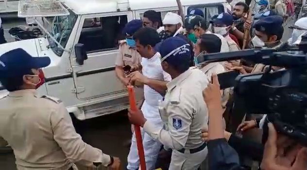 सिंधिया को काले झंडे दिखाने गए कांग्रेस नेताओं पर पुलिस ने भांजी लाठियां