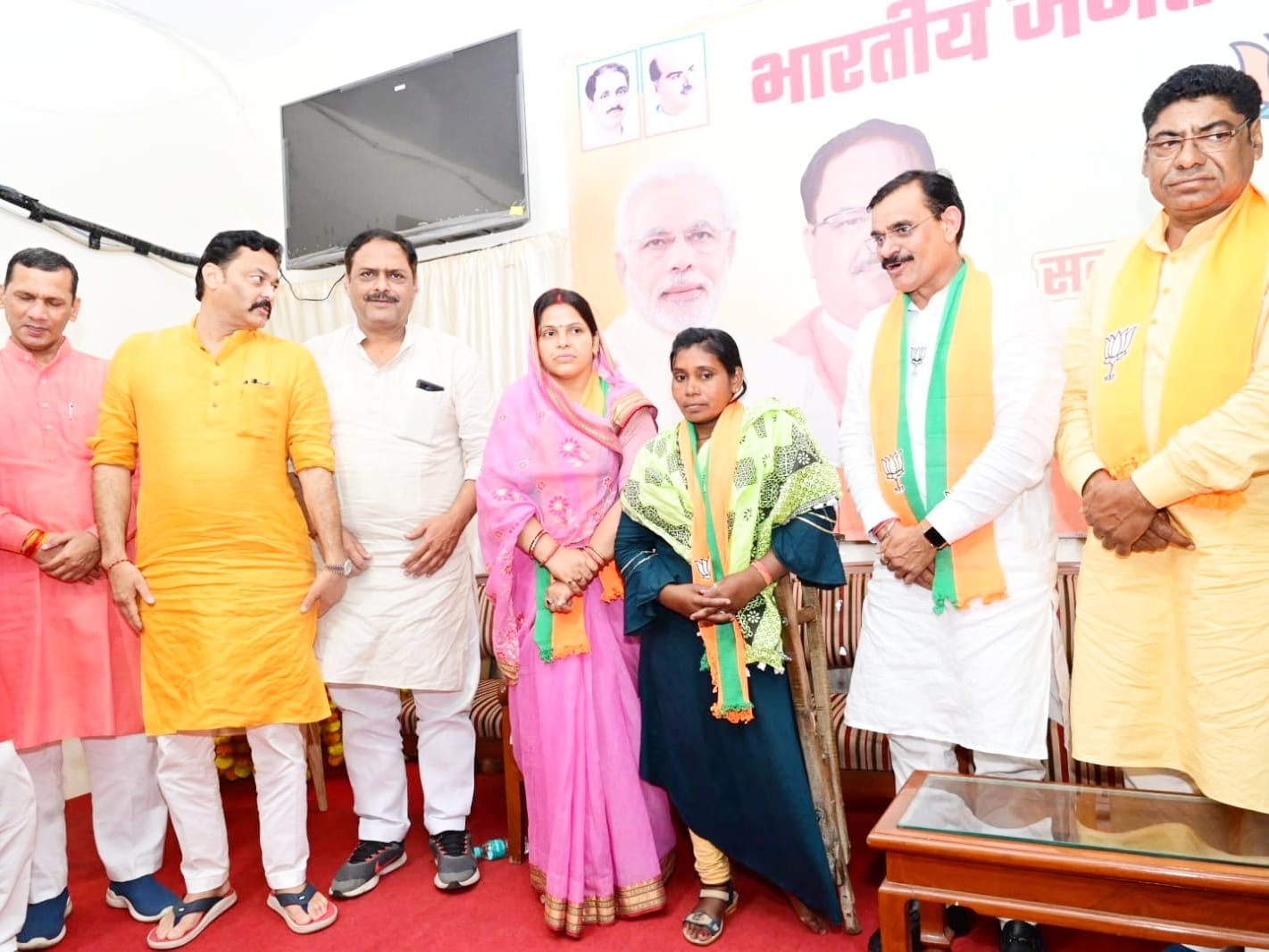भोपाल। मध्यप्रदेश (MP Political News) में नगरीय निकाय चुनाव का संग्राम चल पड़ा है। मतदाता खामोश है और पाटियों की मार्केटिंग शुरु हो गई है। कांग्रेस बोलने की आजादी का नारा लेकर अभियान चला रही हैं। वहीं भाजपा हर वर्ग को साथ लेकर कार्यकर्ताओं की पार्टी बोलकर मुहिम चला रही है। इसी कार्यक्रम के तहत भाजपा की तरफ से कटनी में एक दिव्यांग महिला को पार्षद का टिकट दिया गया है। जिसका वह पूरे प्रदेश में जमकर प्रचार कर रही है। इस अवसर पर भाजपा के प्रदेश अध्यक्ष विष्णु दत्त शर्मा (BJP Leader Vishnu Dutt Sharma) का कहना था कि यह काम केवल भाजपा ही कर सकती है।
