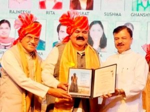 रवींद्र कॉलेज के दीक्षांत समारोह में मंत्री स्कूल शिक्षा एवं परिवहन राव उदय प्रताप सिंह भाजपा प्रवक्ता डॉक्टर दुर्गेश केसवानी को शोध पूरा करने पर डिग्री प्रदान करते हुए। चित्र आयोजक की तरफ से जारी।