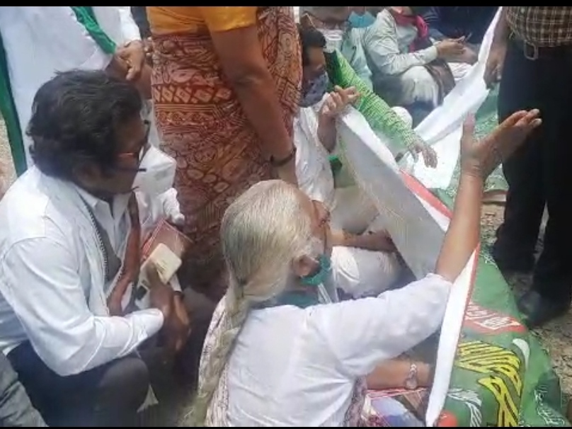 उन्होंने आरोप लगाते हुए कहा कि किसानों के तीन बिल का विरोध आगे भी इसी तरह जारी रहेगा। इधर, गांधी भवन से मेधा पाटकर निकलकर जैसे ही बाहर निकली तो उन्हें पुलिस ने रोक लिया। यहां काफी देर तक हंगामा मचा रहा। मौके पर एसपी विजय खत्री मेधा पाटकर (Medha Patkar) को मनाने पहुंचे। हालांकि मेधा पाटकर धरने पर बैठ गई थी। सोनू शर्मा ने कहा कि प्रदेश में इमरजेंसी जैसे हालात आज भी है। विरोध करने वालों को रोकने और उनके खिलाफ मुकदमे दर्ज करने का काम सरकारें कर रही है। उल्लेखनीय है कि देशभर के किसानों ने शनिवार को राजभवन का घेराव कर तीन बिल के खिलाफ प्रदर्शन का ऐलान किया था। इस मुहिम के बाद एक बार फिर किसानों का तीन बिल वाला मुद्दा जीवित हो गया है।