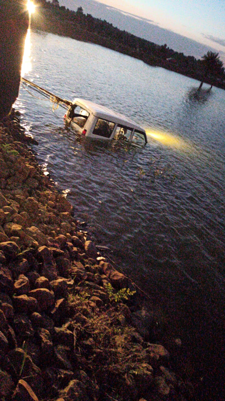 माचागोरा डैम में गिरी गाड़ी, पुलिस ने जेसीबी से निकाली बाहर