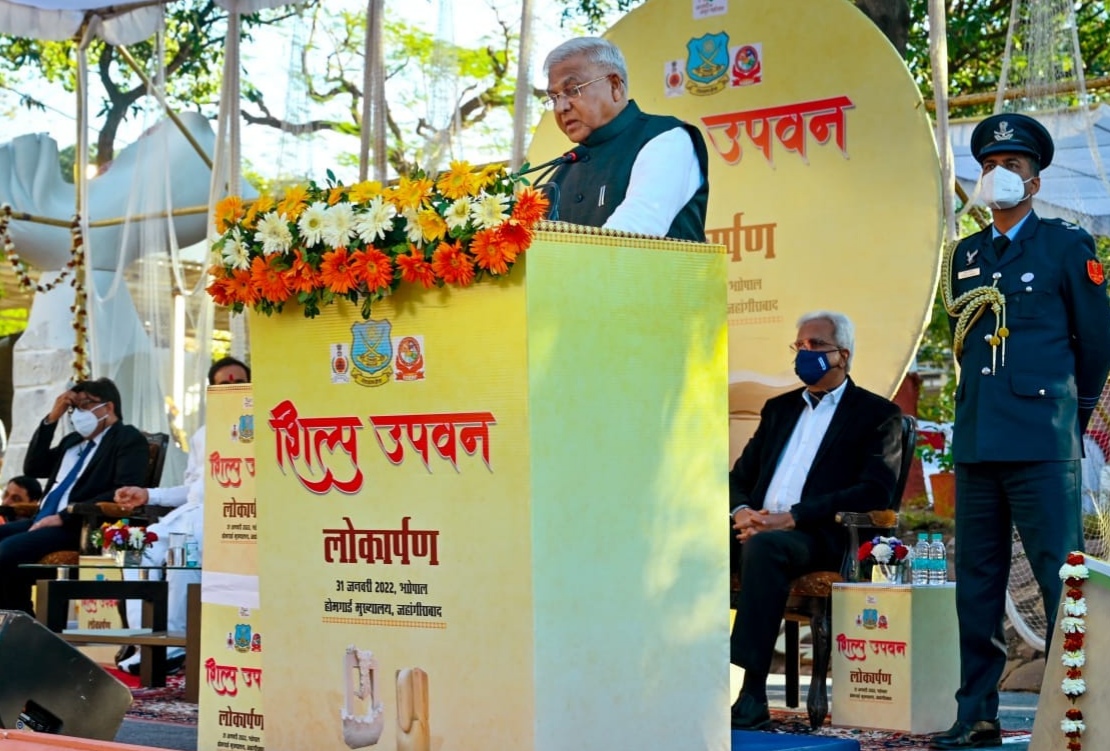 पुलिस मुख्यालय से जारी प्रेस विज्ञप्ति के अनुसार राज्यपाल ने अपने संबोधन में कहा कि आपदा में बिना डरे, पीछे हटे अपना कर्तव्य निभाते हुए वीर जवानों के कौशल को इस शिल्प उपवन में प्रदर्शित करना सराहनीय है। उन्होंने शिल्पकारों को बधाई भी दी। शिल्प उपवन में भगवान गणेश, कामधेनु, शब्दब्रम्ह, चातक पक्षी, शिव-शक्ति, प्रकृति और उल्का पिण्ड रूपी पाषाण में रचित कलाकृतियां बनाई गई है। राज्यपाल मंगुभाई पटेल (Governor Mangubhai Patel) ने कहा यह उपवन जवानों की सेवा, त्याग, तप से परिचित कराएगा। पटेल ने जवानों को संबोधित करते कहा कि होमगार्ड चुनौतियों का सामना दृढ़ता और वीरता के साथ करने वाले वीरों का संगठन है। प्राकृतिक आपदा, महामारी और शांति-सुरक्षा से जुडे़ प्रबंधन, राहत और बचाव का कार्य अत्यंत चुनौतीपूर्ण है। जवानों का सदैव तनाव मुक्त रहना, धैर्य के साथ काम करना ज़रूरी हैं। इसके लिए निरंतर दक्षता प्राप्ति के कार्य और अभ्यास करते रहना चाहिए। प्रशिक्षण और कौशल उन्नयन के आयोजन भी होने चाहिए। इनमें आपदा प्रबंधन के अनुभवों को साझा करना चाहिए। योग और खेलकूद को जीवन की दिनचर्या में शामिल करना भी ज़रूरी है।