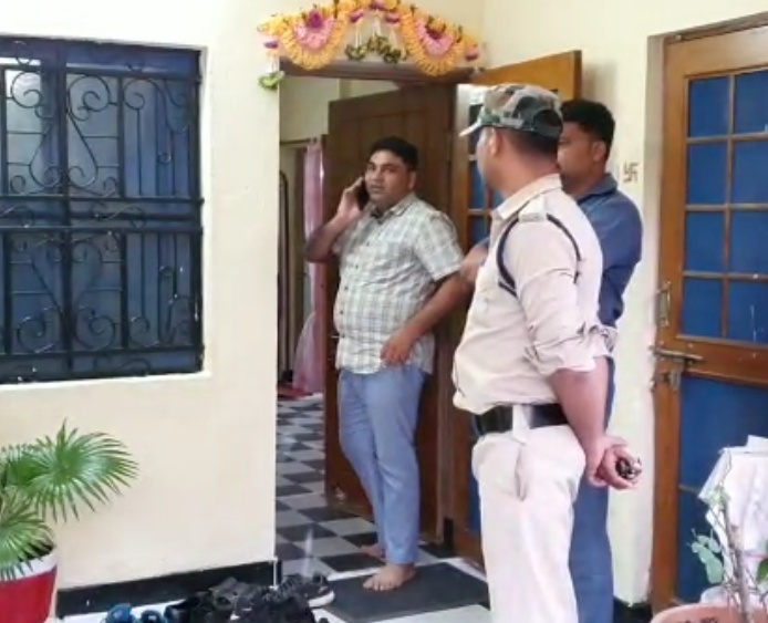 सहायक आबकारी आयुक्त आलोक खरे के यहां छापे के दौरान कार्रवाई करती हुई लोकायुक्त पुलिस की टीम