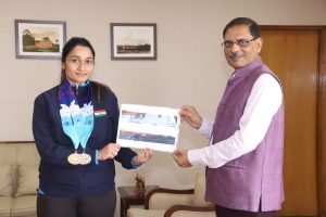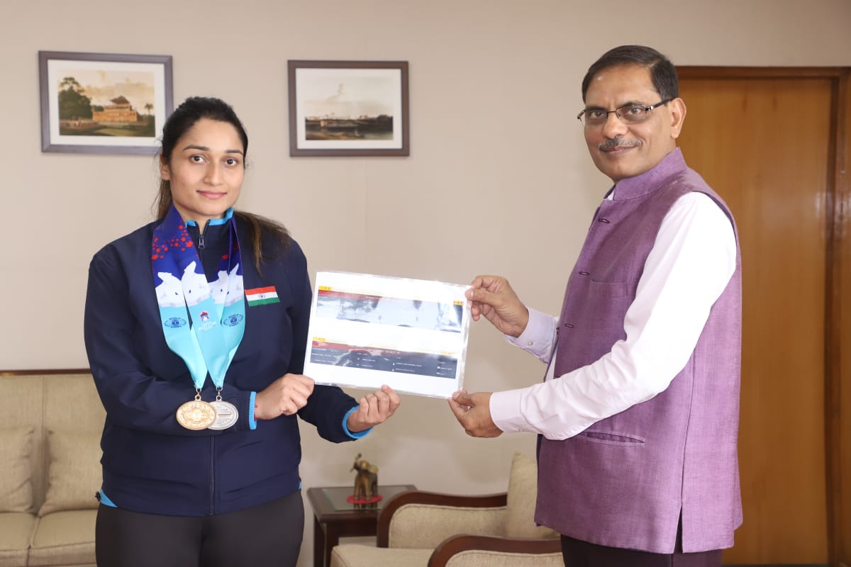 MP Cop News: पुलिस महानिदेशक ने वर्ल्ड पुलिस एंड फायर गेम्स में स्वर्ण पदक जीतने वाली आरक्षक से मुलाकात कर दी बधाई