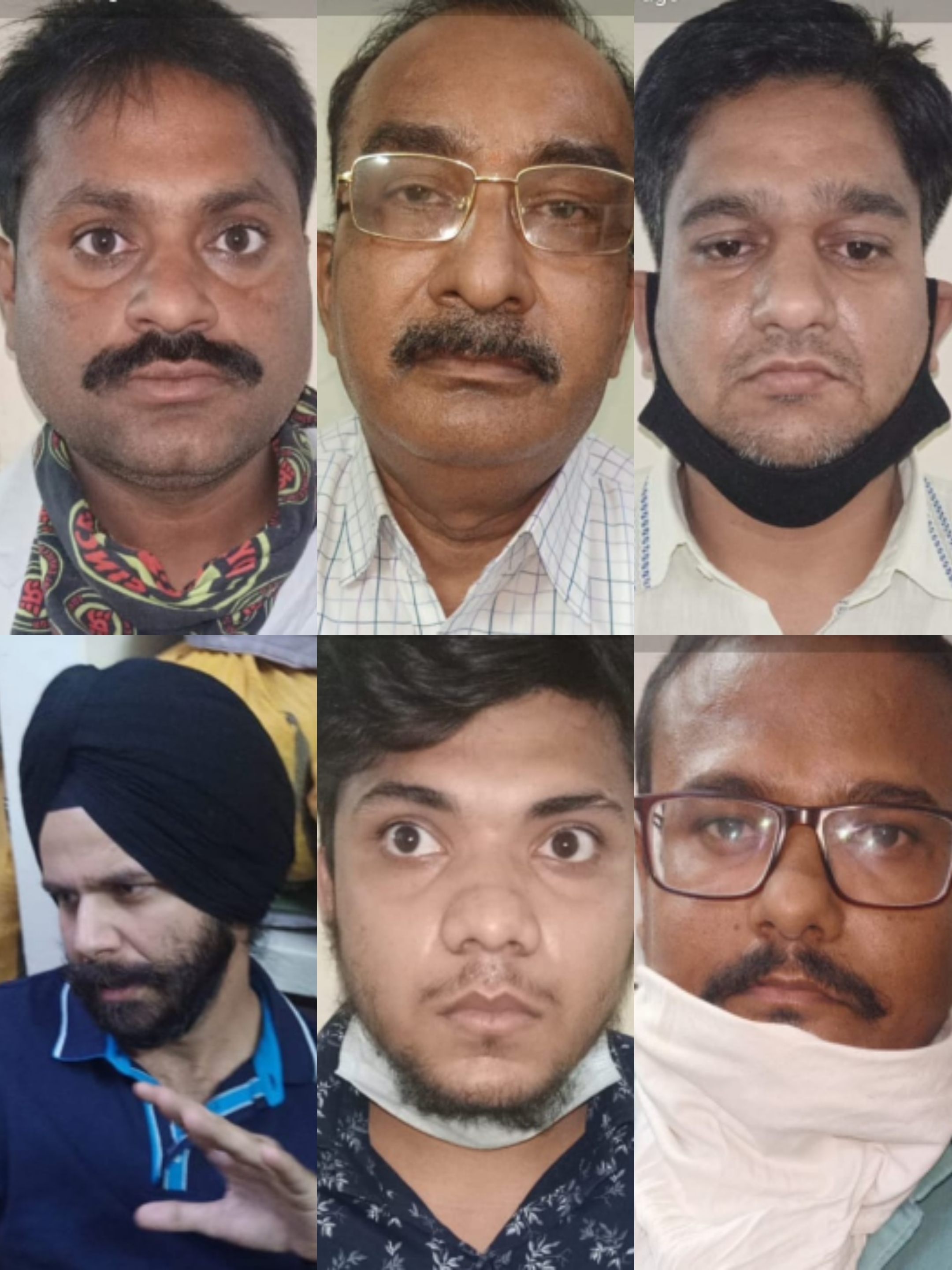 गिरफ्तार आरोपियों में अमन उर्फ आकाश (Aman@Akash Jain) पिता दिनेश जैन उम्र 20 वर्ष निवासी गोमा की फेल के पास इंदौर, सलीम (Salim) पिता रफीक रहमान उम्र 36 वर्ष निवासी 246 बी चंदननगर धार रोड इंदौर, मंजूर खान (Manjur Khan) पिता अजमेरी खान कुमार उम्र 38 वर्ष निवासी जूना रिसाला इंदौर, सिमरन सिंह (Simran Singh) पिता सतनाम बग्गा उम्र 24 वर्ष निवासी जीएनटी मार्केट धार रोड इंदौर, राजेन्द्र सिंह (Rajendra Singh) पिता सज्जन सिंह राठौर उम्र 60 वर्ष निवासी गुजरात हाल मुकाम साईनाथ कॉलसेनी तिलक नगर इंदौर, और संजय (Sanjay Patel) पिता तरसी भाई जाति पटेल उम्र 37 वर्ष निवासी साईनाथ कॉलोनी तिलक नगर हैं।