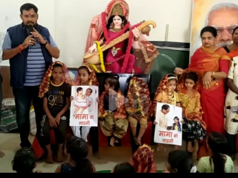 भोपाल। मध्यप्रदेश के मुख्यमंत्री शिवराज सिंह चौहान ने लाडली लक्ष्मी योजना दो पाइंट ओ शुरू की है। जिसका कार्यक्रम बुधवार को रखा गया था। यह योजना पूरे भारत में काफी चर्चित हुई थी। इसी योजना की रीलाचिंग किए जाने पर गुरूनानक मंडल (Bhopal BJP News) ने आभार कार्यक्रम भी रखा। इसमें मुख्यमंत्री शिवराज सिंह चौहान के प्रति 251 बालिकाओं ने आभार जताया। इसके लिए बकायदा रंगोली से लेकर कई नारे लिखे गए थे। कार्यक्रम में मामा—मामा के जयकारे भी लगाए गए थे।