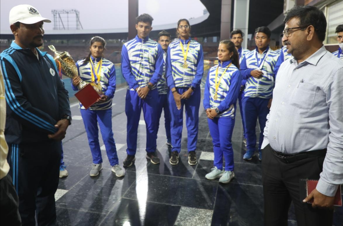खिलाड़ियों ने अपने प्रशिक्षक पीजूष बारोई (Pijush Baroi) के साथ मिलकर चैंपियनशिप के अनुभव के बारे में संचालक खेल को विस्तार से जानकारी दी। इस अवसर पर संयुक्त संचालक खेल डॉ. विनोद प्रधान और बीएस यादव (BS Yadav) भी विशेष रूप से उपस्थित रहे। चैंपियनशिप 24 से 27 अक्टूबर तक हिमाचल प्रदेश के बिलासपुर में खेली गई। खेल संचालक ने खिलाड़ियों और प्रशिक्षक पीजूष बारोई को इस उपलब्धि पर बधाई दी। उन्होंने कहा कि कावेरी और अन्य खिलाड़ियों ने बहुत बढ़िया प्रदर्शन किया है। हमें उम्मीद है कि हमारी अकादमी के खिलाड़ी भविष्य में होने वाले अन्य टूर्नामेंट में भी स्वर्णिम प्रदर्शन करेंगे। अकादमी की कावेरी ढीमर (Kaveri Dheemar) ने शानदार प्रदर्शन करते हुए कुल 7 पदकों पर कब्जा जमाया। पिछले तीन वर्ष से कावेरी नेशनल चैंपियन है। कावेरी टोक्यो ओलंपिक और एशियन खेलों के क्वालीफायर में भी शामिल रही है।