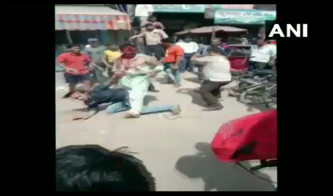 #WATCH Baghpat: Two Army jawans(one with a red bag and one in green kurta) thrashed by restaurant employees yesterday after a minor argument.More than 7 people have been arrested by Police. (Note: Abusive language) pic.twitter.com/Of0oaDWdr5