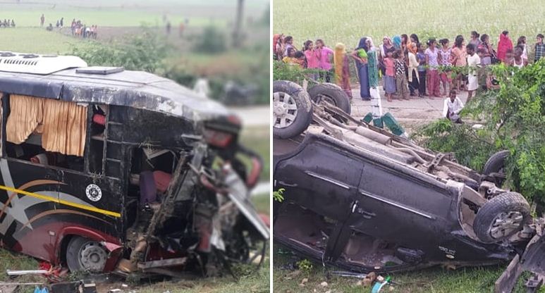 घटना कन्नौज जिले के सौरिख थाने के सकरावा इलाके की है। सुबह करीब पांच बजे 6 बजे लखनऊ-आगरा एक्सप्रेस वे कट 148 पर बिहार से दिल्ली जा रही तेज रफ्तार सवारियों से भरी प्राइवेट डबल डेकर बस ने सड़क किनारे खड़ी कार में जोरदार टक्कर मार दी।
